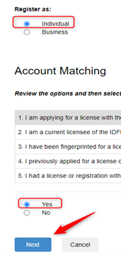 1. Make sure to select “Individual” and “Yes,” then click Next.