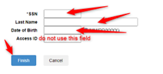 1. Complete the top three boxes only. DO NOT TRY TO ENTER AN ACCESS ID. Then click Finish.