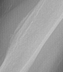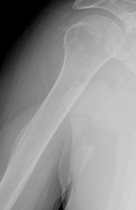 This normal variant appears as a prominent deltoid tuberosity with cortical radiolucency and irregularity. This finding occurs due to the insertion of the deltoid tendon at the deltoid tuberosity. This non-pathologic anatomic variant can be confused with malignancy, due to the irregular lucent appearance and the simulation of an aggressive periosteal reaction. A knowledge of the classic location and appearance should allow for proper diagnosis and avoidance of unnecessary imaging or biopsy.